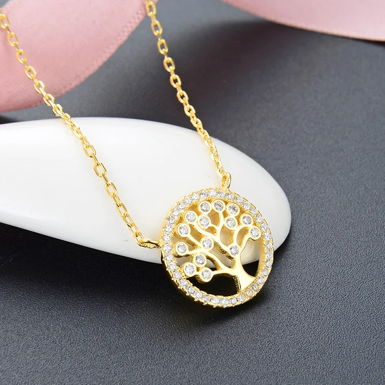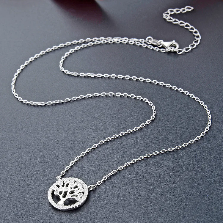 Fancy Design Nickel Free 925 Sterling Silver Necklaces White Gold Handmade Wishing Tree of Life Necklace